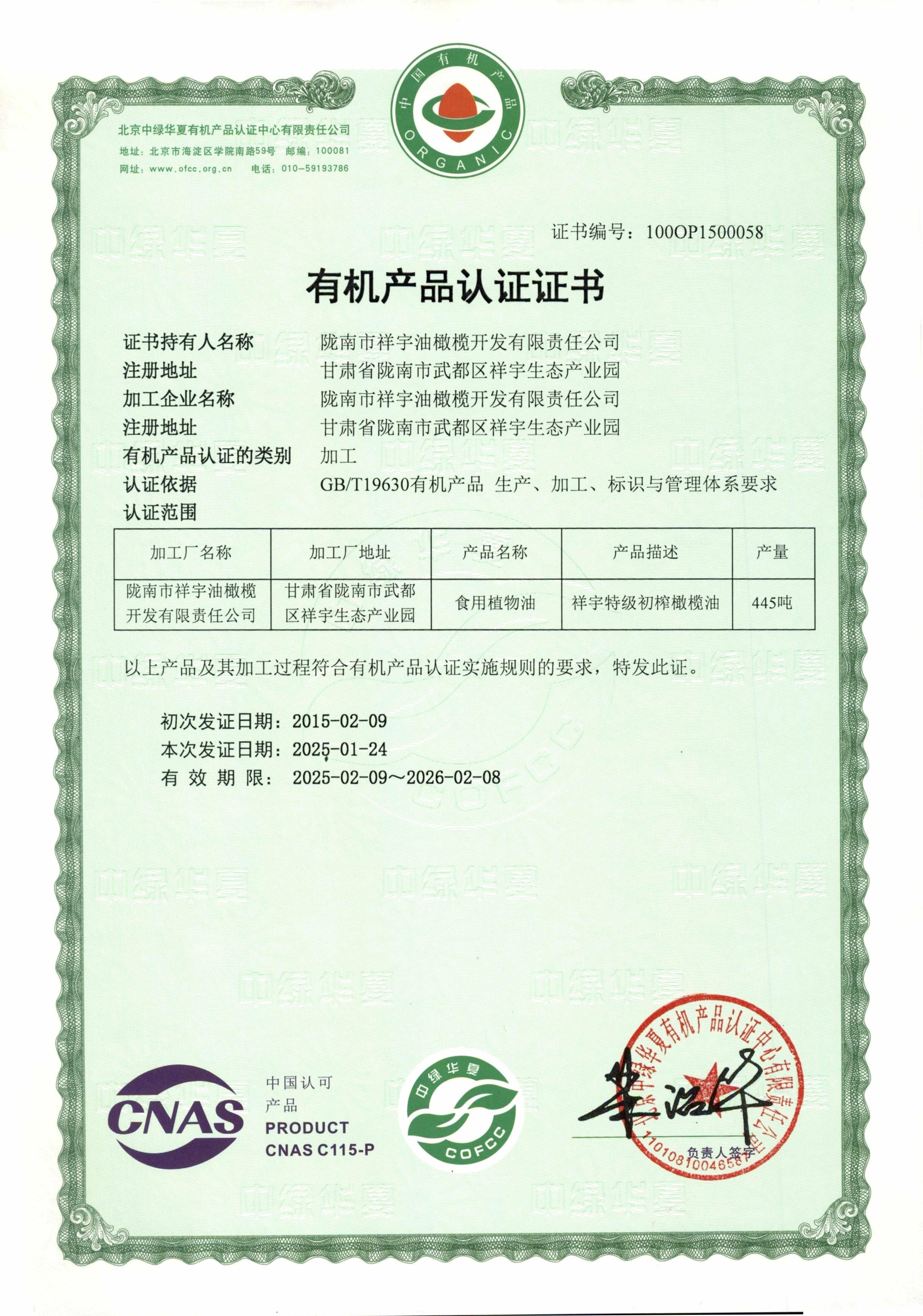 有機(jī)產(chǎn)品認(rèn)證證書(shū)