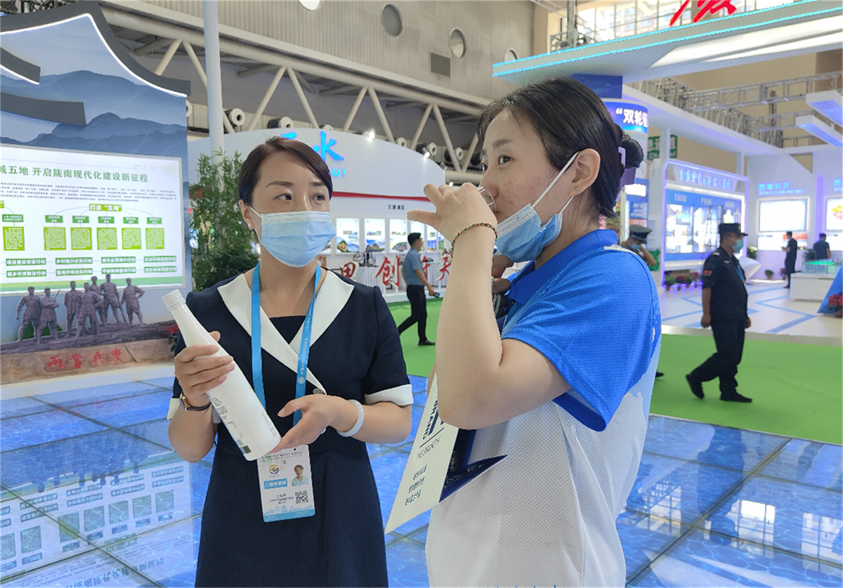 省市領(lǐng)導(dǎo)走進(jìn)隴南館,祥宇公司董事長劉玉紅邀請各位領(lǐng)導(dǎo)品鑒了祥宇系列產(chǎn)品,