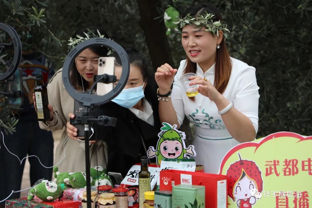 和武都區(qū)桔柑鎮(zhèn)賀家坪油橄欖基地以及直播帶貨現(xiàn)場(chǎng)。